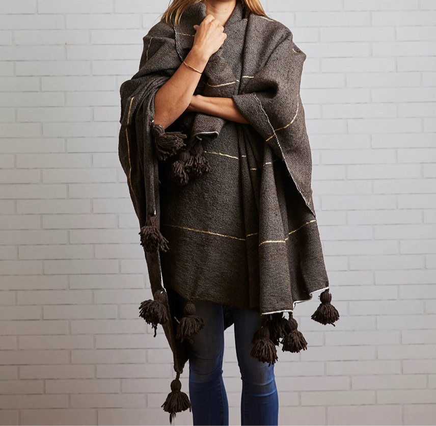 MOROCCAN TASSELED BLANKET | DARK GREY/BROWN